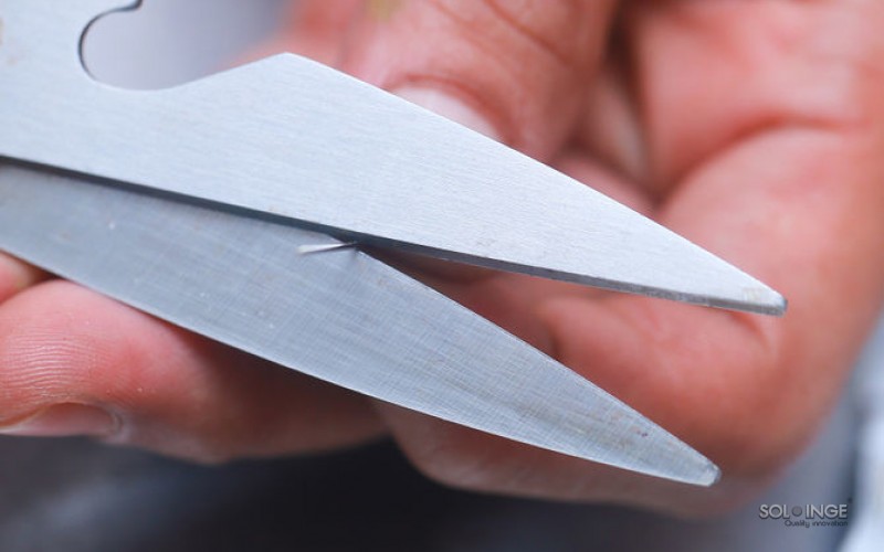 Cho kim vào giữa lưỡi kéo, cắt nhẹ nhàng để cây kim lăn đều khắp lưỡi kéo. Làm như vậy khoảng vài lần, cây kéo cũng có thể bén hơn rất nhiều đấy. Bạn dùng kim băng cũng được nhé!
